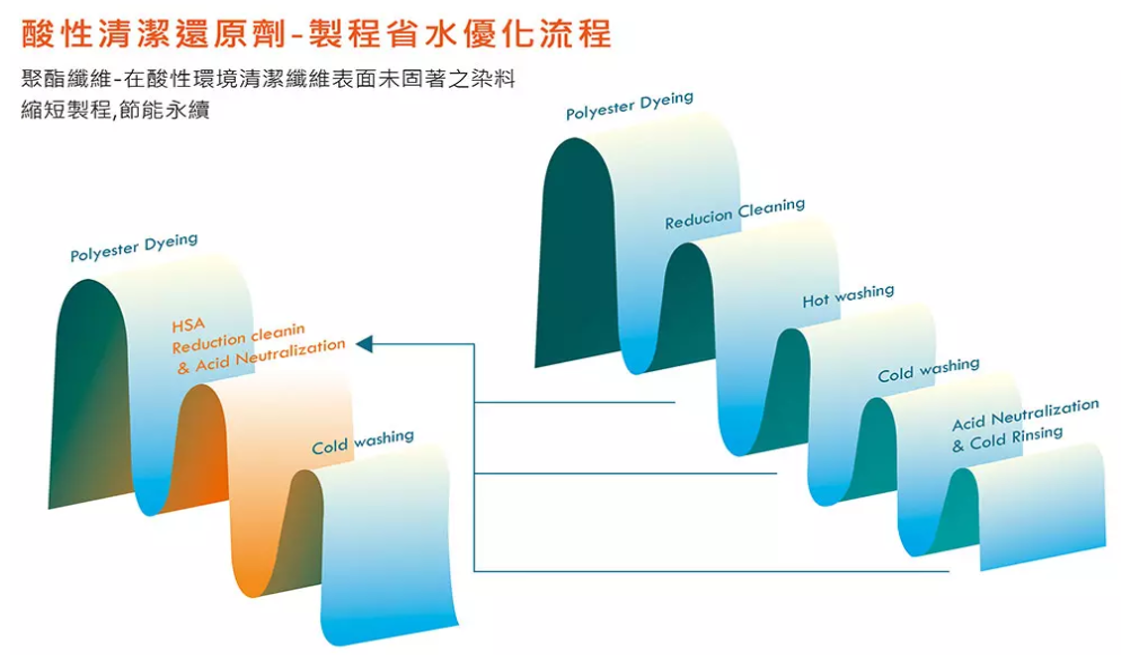 After conventional polyester dyeing, there is often an issue with surface color bleeding, which affects wash fastness. Therefore, after dyeing, a process involving alkaline reduction washing, hot water washing, cold water washing, and acid neutralization is typically required.