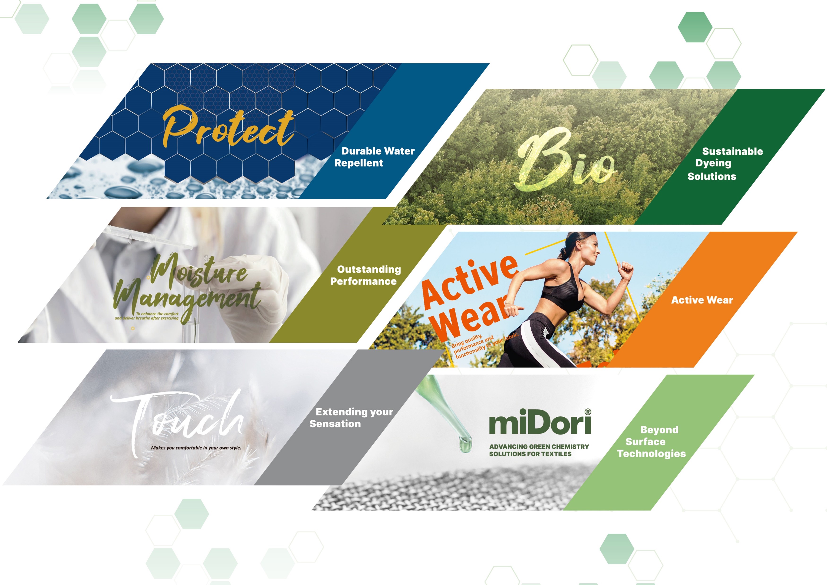 and functional textile-specific dyeing and finishing agents, enhancing the high